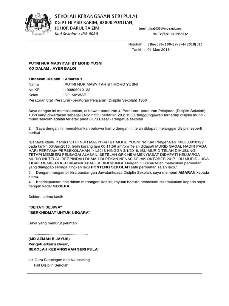 Contoh Surat Amaran Yang Dijana Daripada Ssdm Pdf